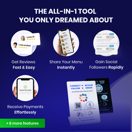 📲 Seamless One-Tap Reviews – Customers tap or scan to leave a review, follow, and engage instantly.