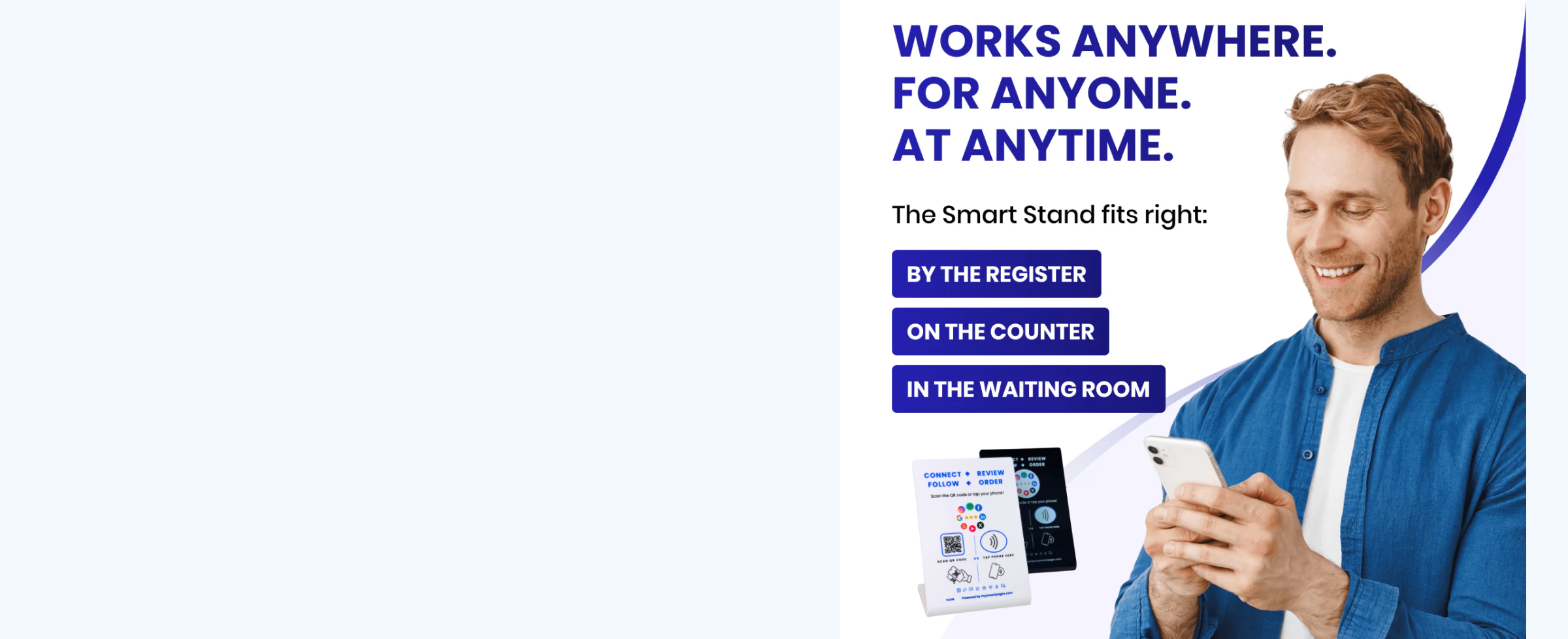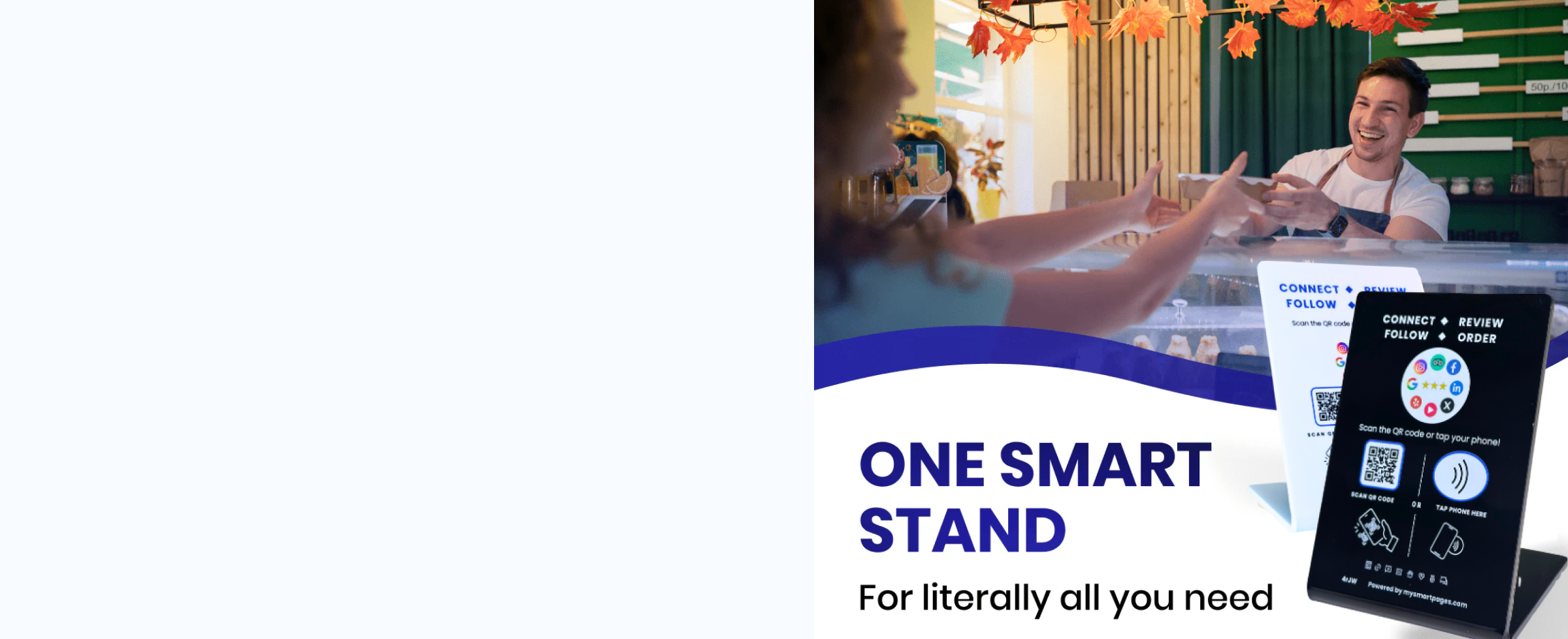 Whether it’s by the register, on the counter, or in the waiting room — the Smart Stand blends in and stands out. Boost reviews, grow your social presence, and engage customers with ease.