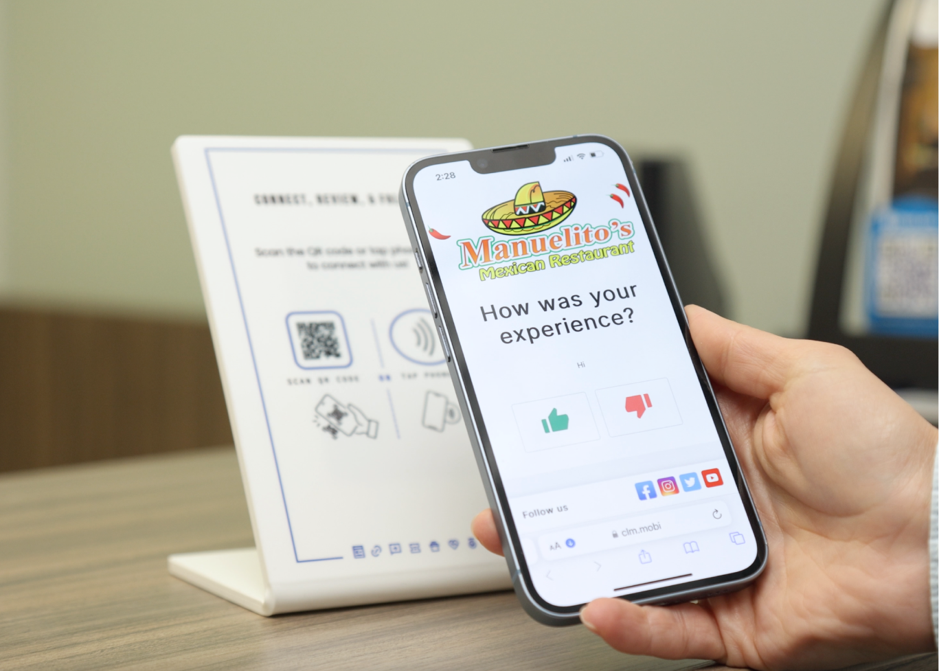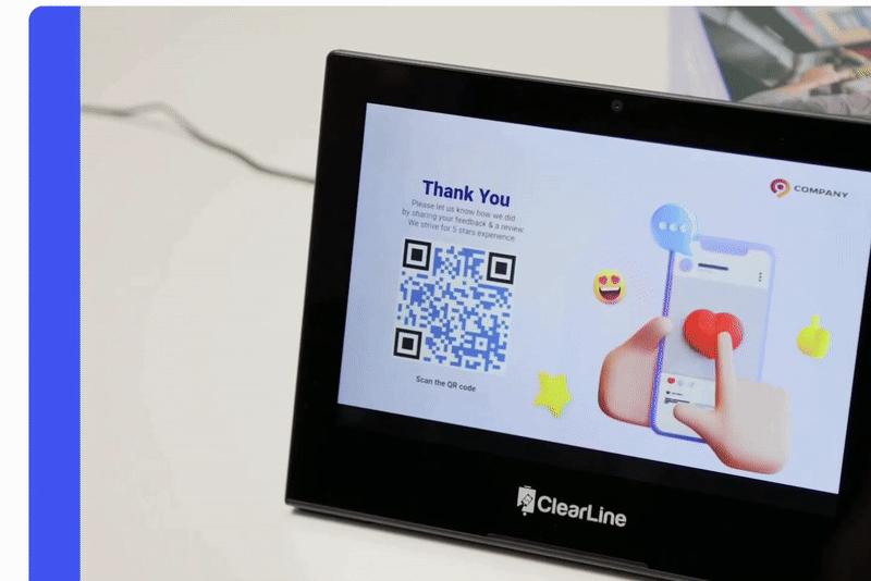 📲 Customers tap or scan your ClearLine smart stand or sticker.