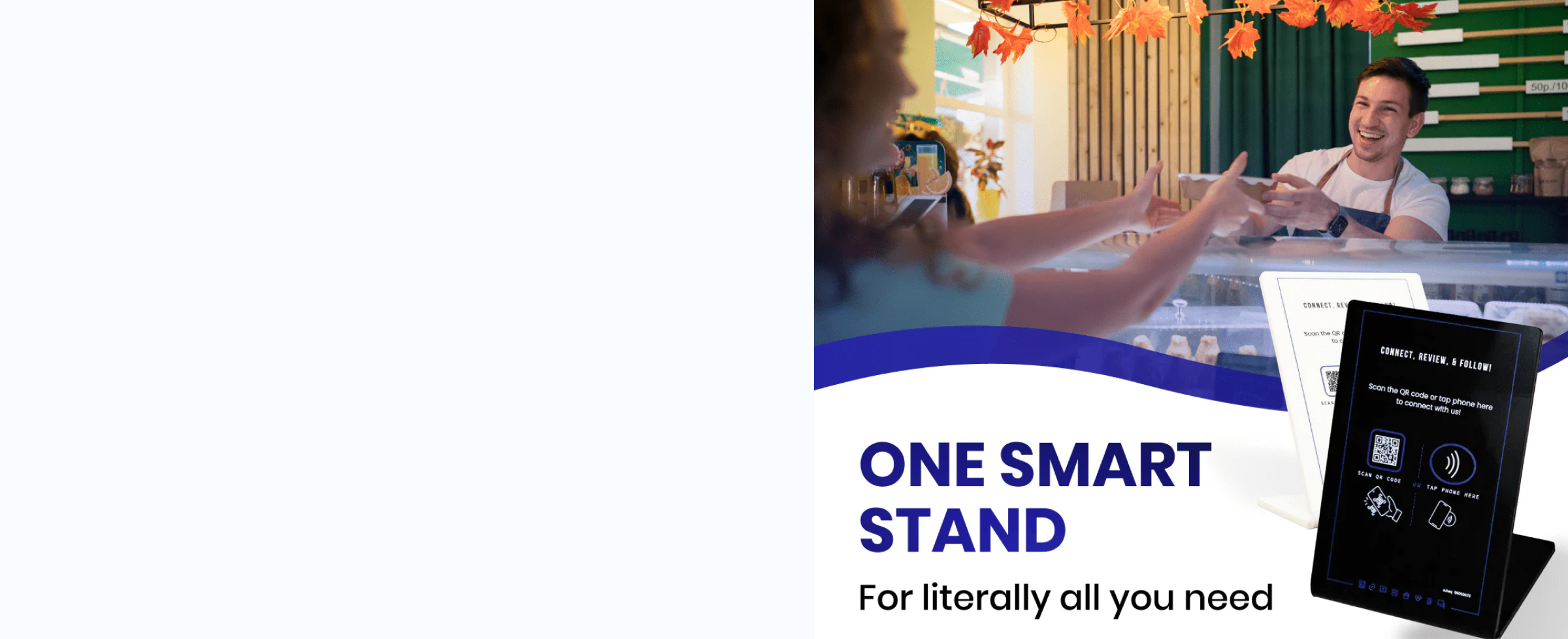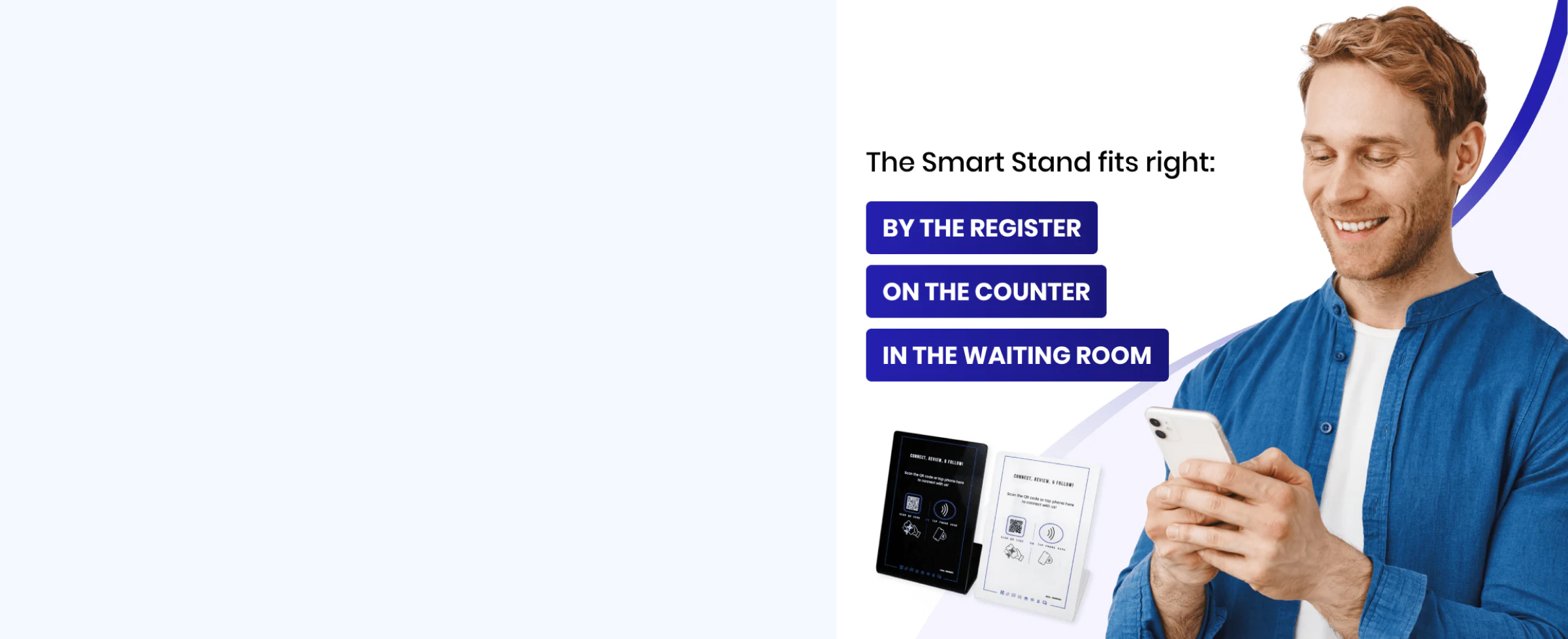 Whether it’s by the register, on the counter, or in the waiting room — the Smart Stand blends in and stands out. Boost reviews, grow your social presence, and engage customers with ease.