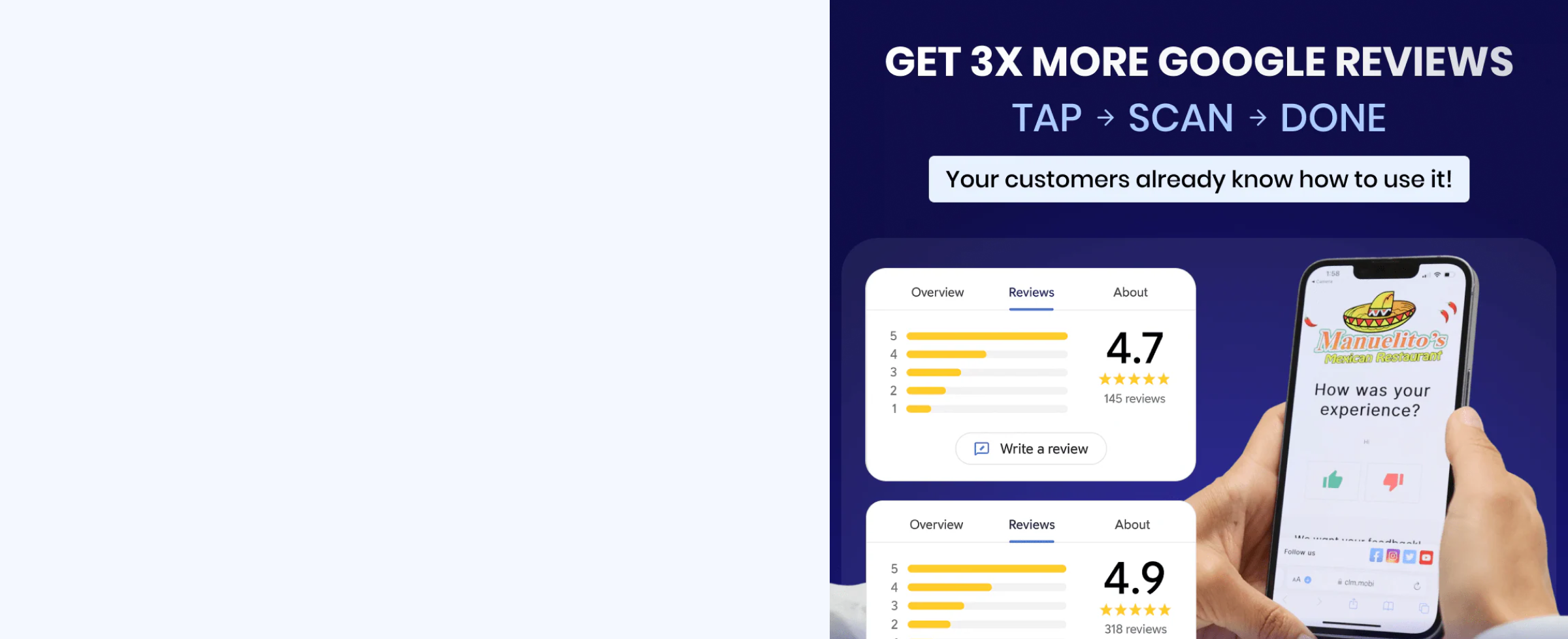 📲 Customers leave a review in just 2-3 seconds by tapping or scanning your ClearLine smart stand or sticker.