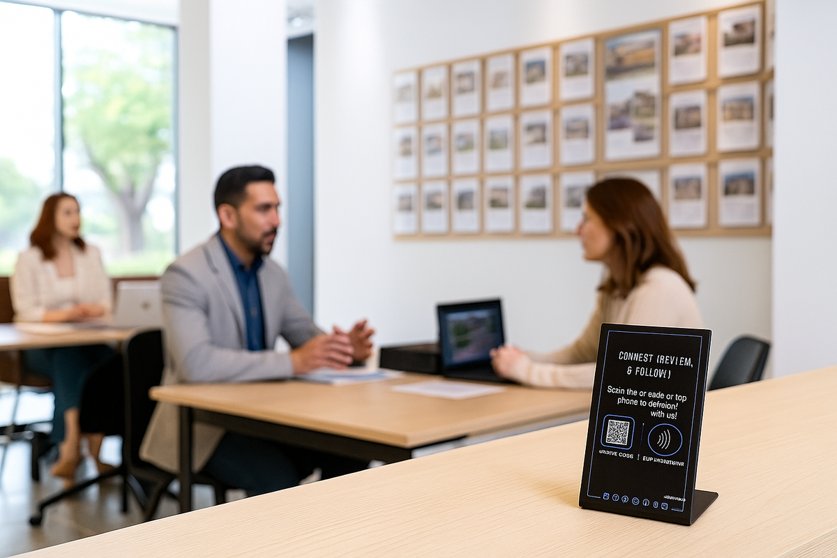 Choose from pre-made or custom sets that include Smart Stands, Stickers, NFC Cards, or Keychains based on your business type.