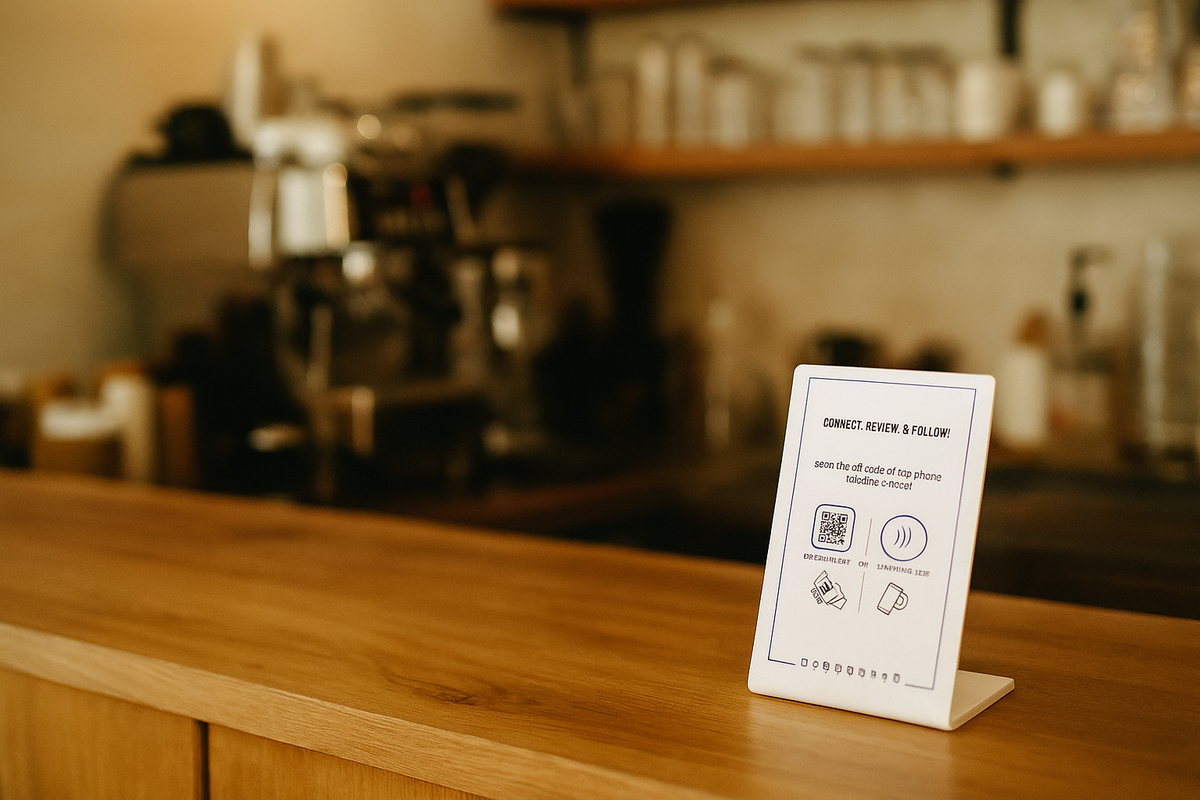Add stickers on counters, takeaway cups, or loyalty cards.