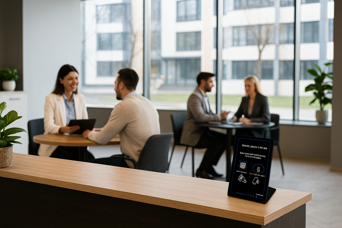 Add to property signs, agent cards, or office desks.